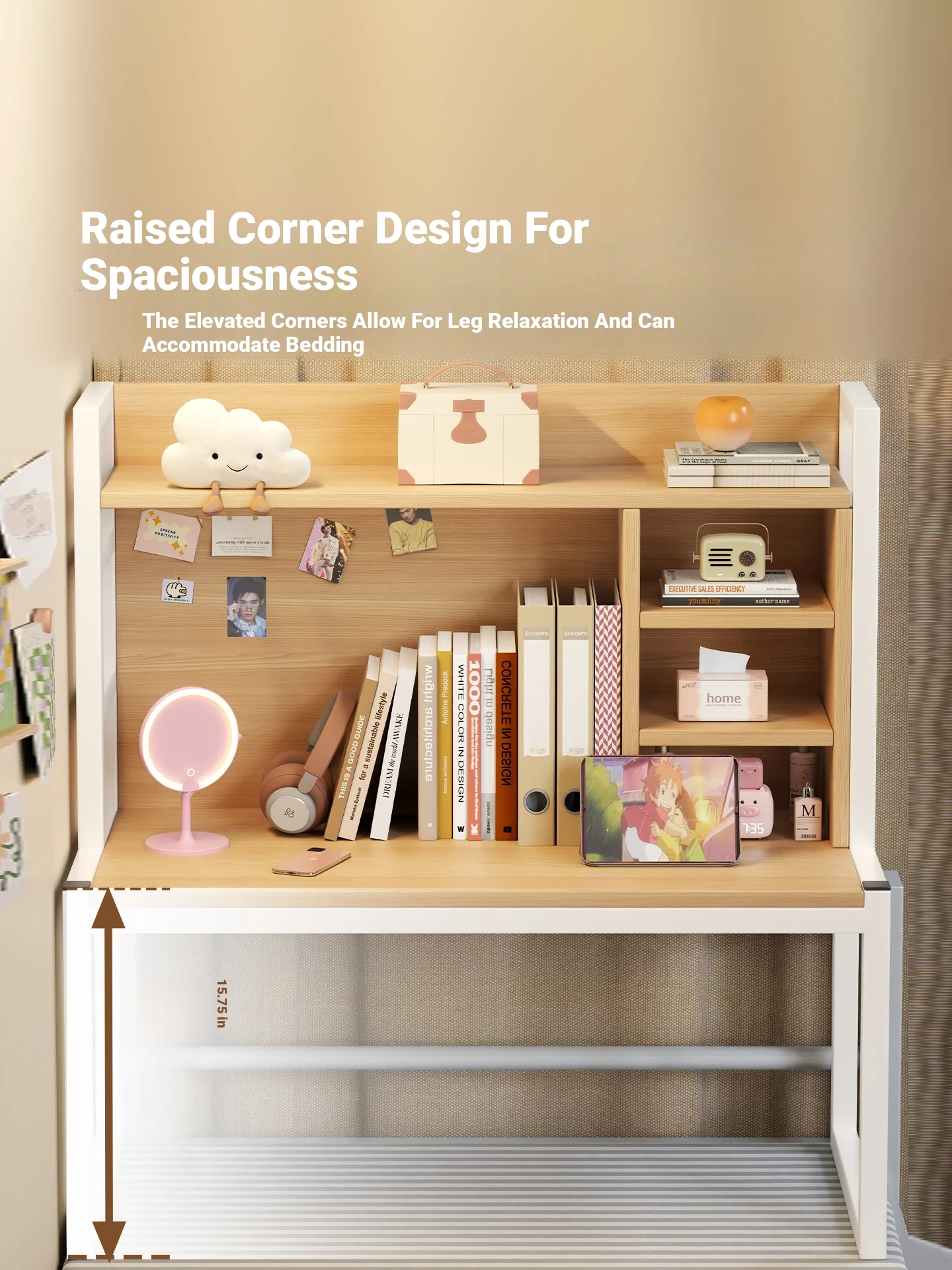 White Frame + White Back Panel with Bookshelf, 31.50in*15.75in*35.43in
