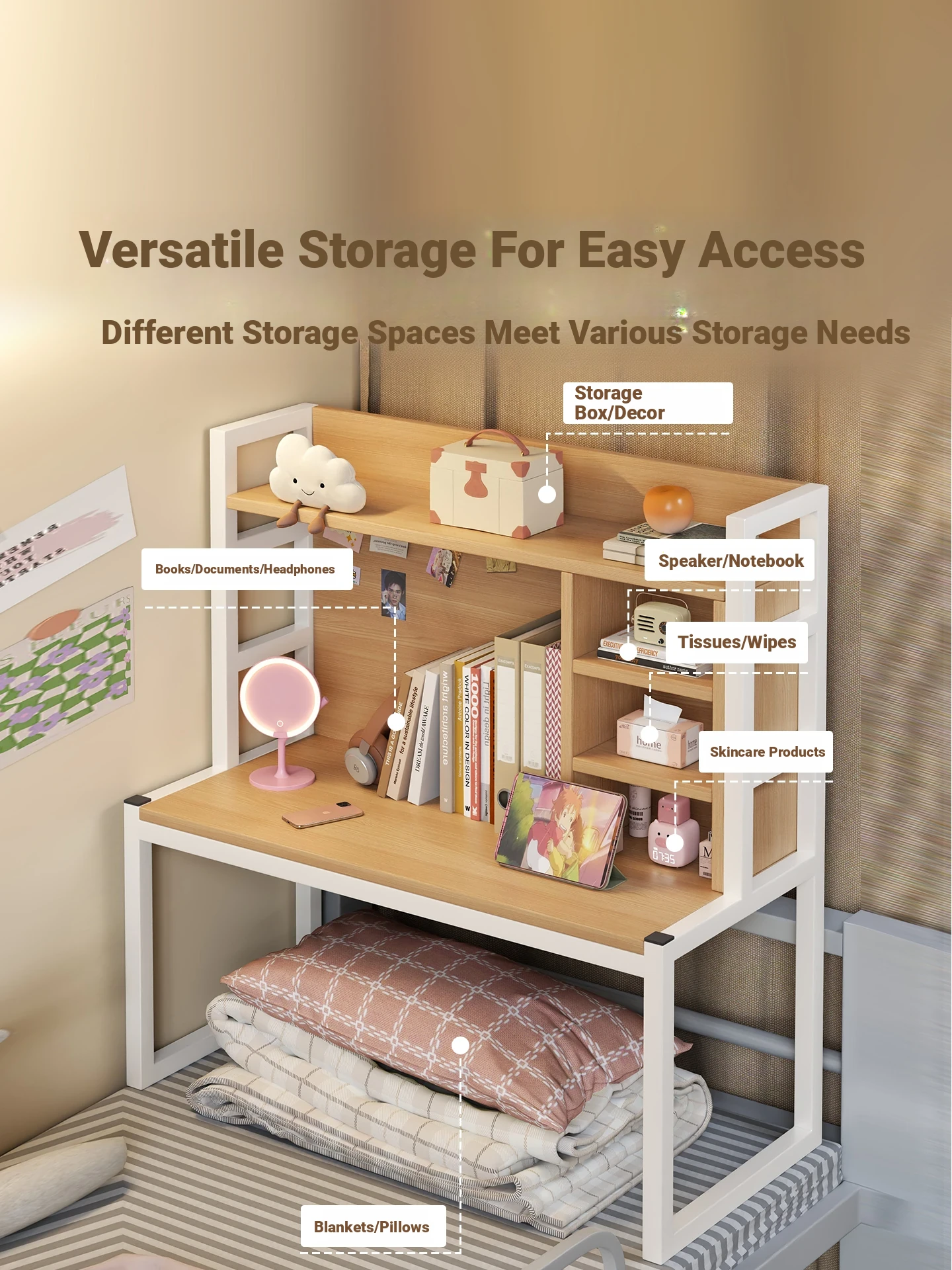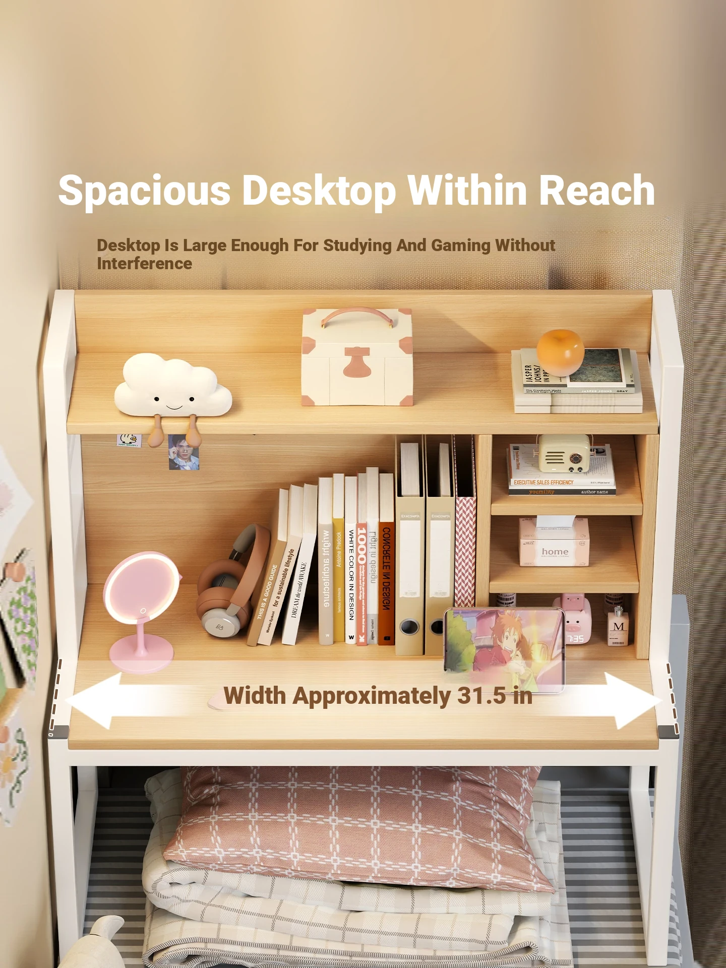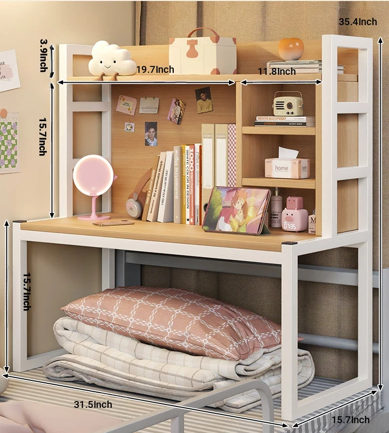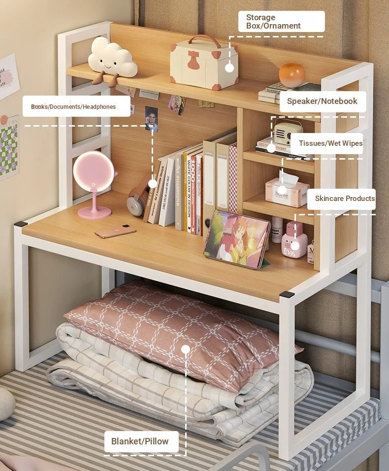 Multi-Functional Bedside Desk for College Students - Ideal Computer Table with Storage Shelf for Books, Perfect for Bunk Beds and Gaming Setup in Dorm Rooms