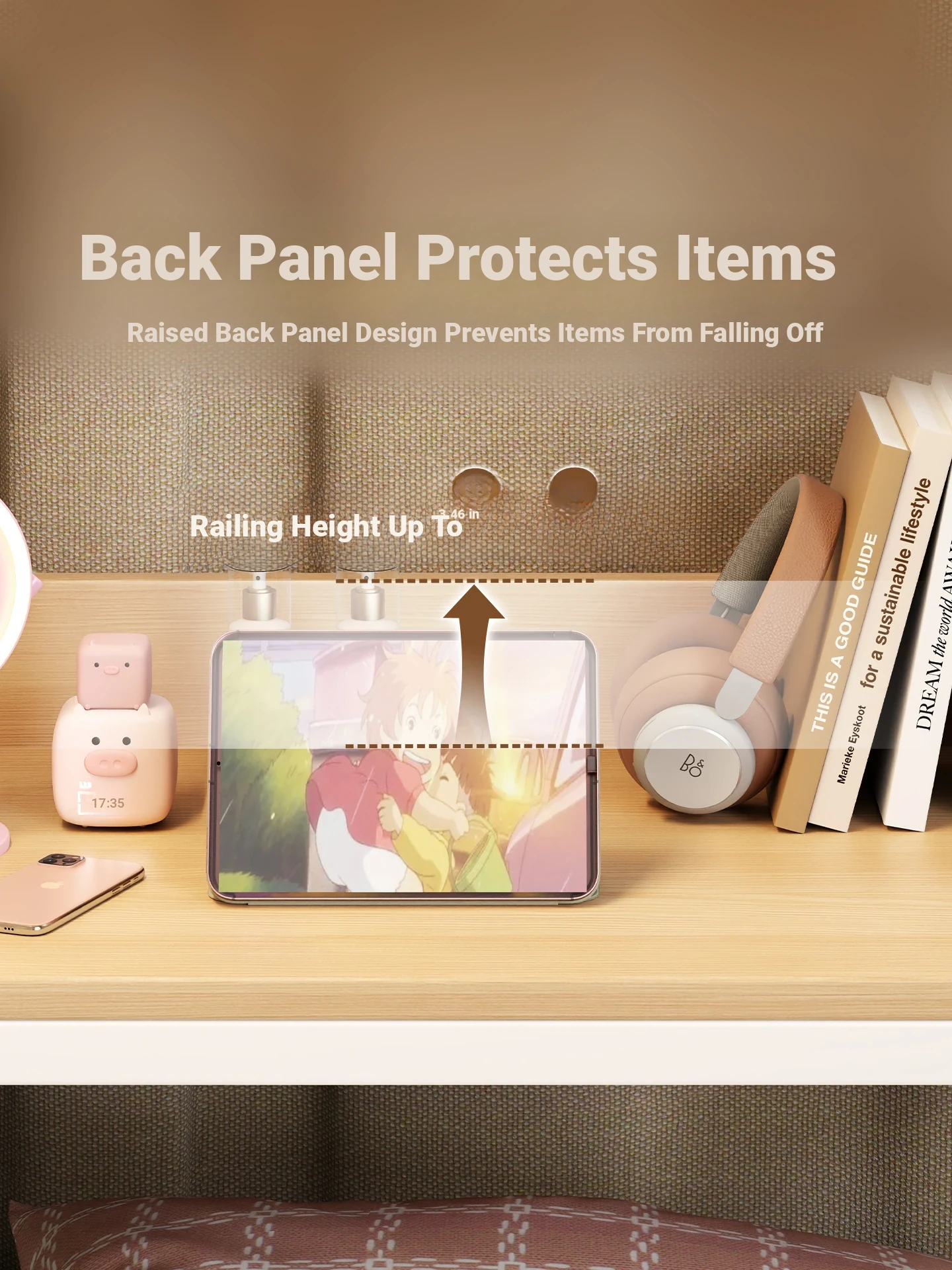 White Frame + Log Rails and Bookshelf at the Back 80*40*90