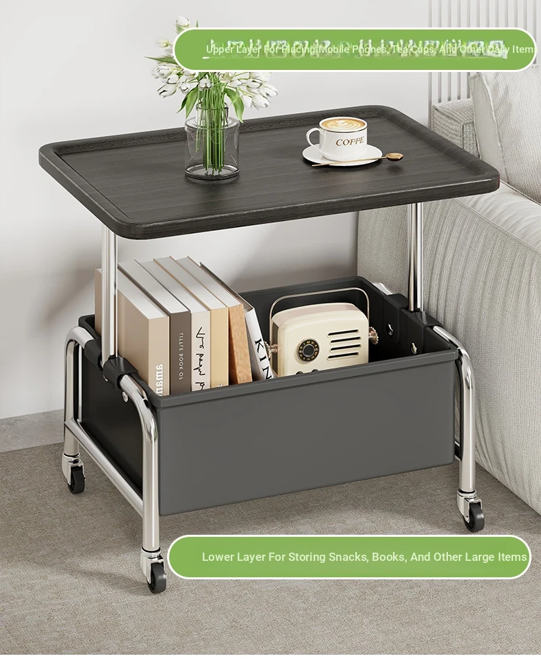 Versatile Rolling Side Table with Wheels - Ideal for Living Room or Bedroom, Perfect as a Small Tea Table or Nightstand Storage Rack