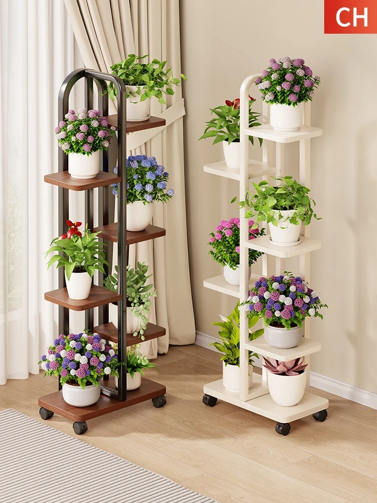 Stylish Mobile Plant Stand with Wheels - Elegant Floor Flower Rack for Living Room and Balcony, Versatile Storage for Succulents and Garden Pots, Perfect for Your Outdoor Space