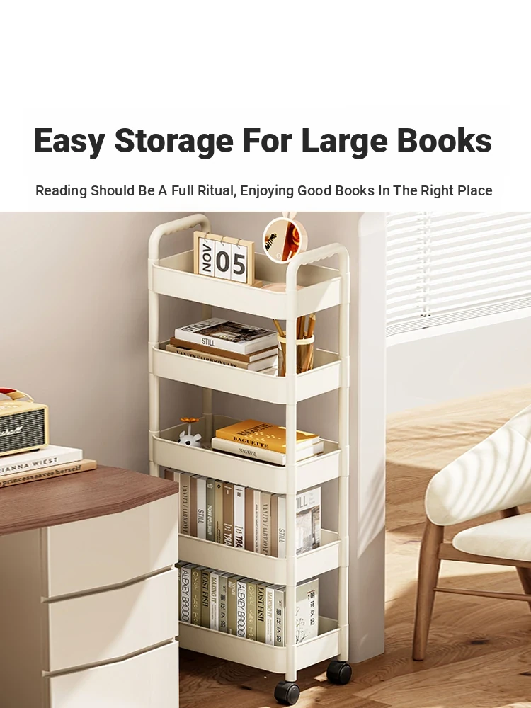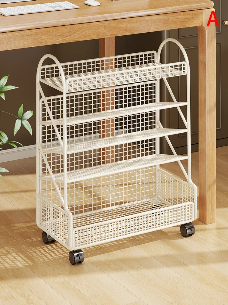 Multi-Layer Bookshelf with Wheels - Portable Snack Storage Cabinet for Under Desk Organization, Easy to Move, Ideal for Home and Office Use