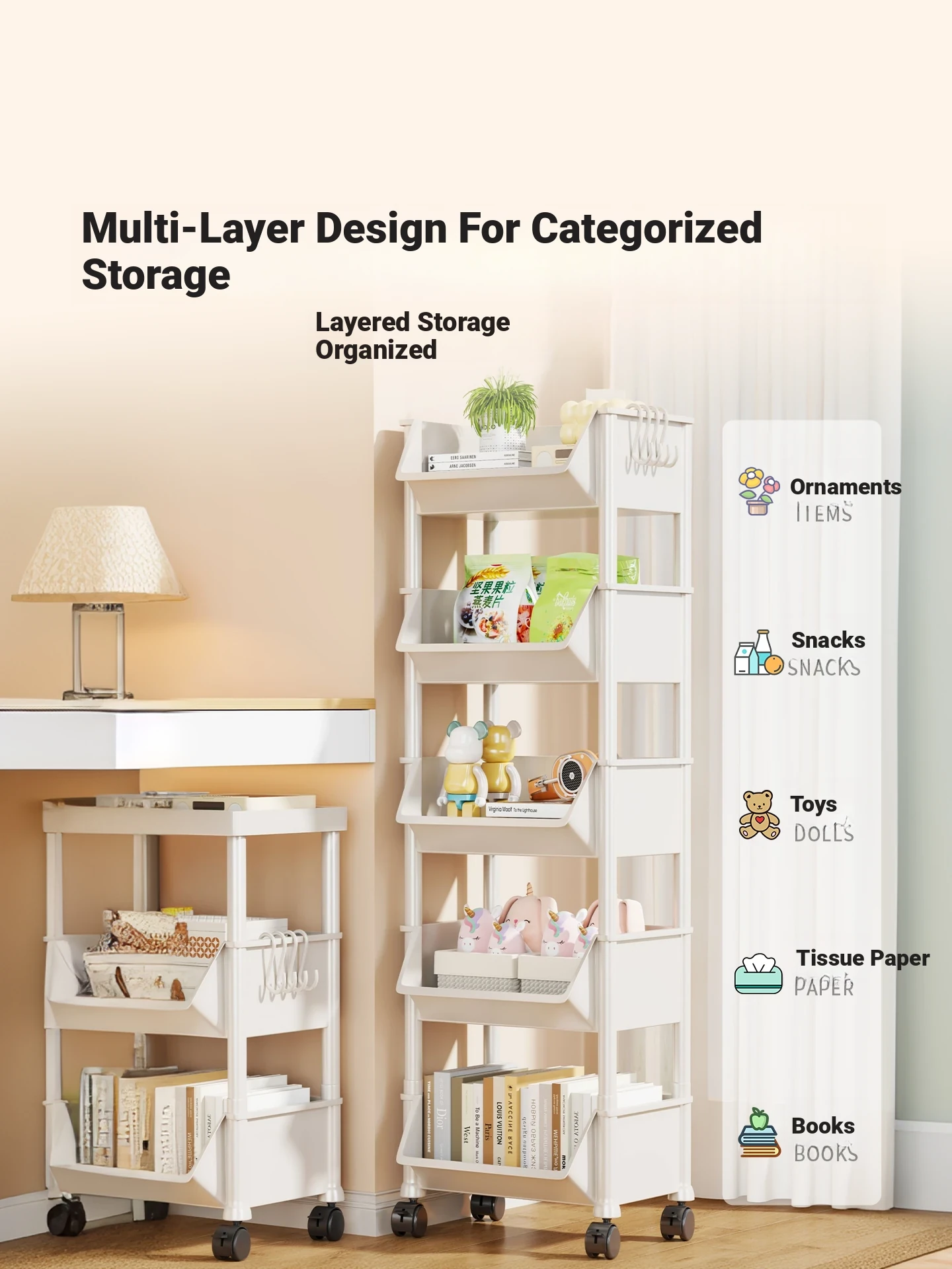 Multi-Layer Rolling Snack Storage Cart - Portable Home Organizer for Easy Living Room Use, Perfect for Snacks and Essentials, Keep Your Space Tidy and Stylish!