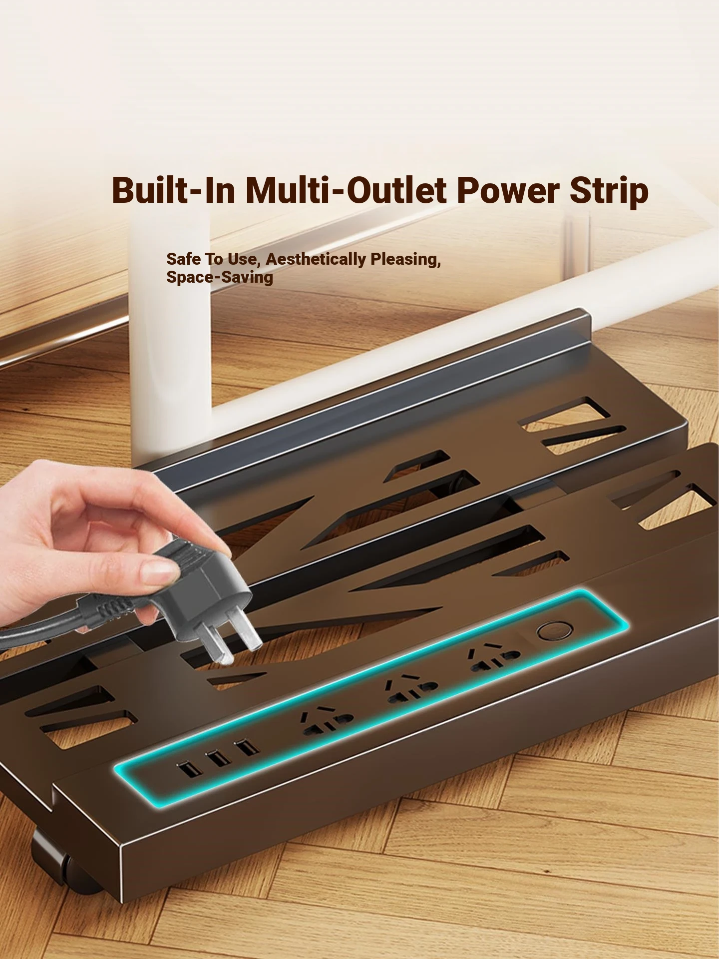 Under-Desk Movable Computer Storage Rack with Power Strip – Office PC Holder and Organizer Base for Efficient Space Management