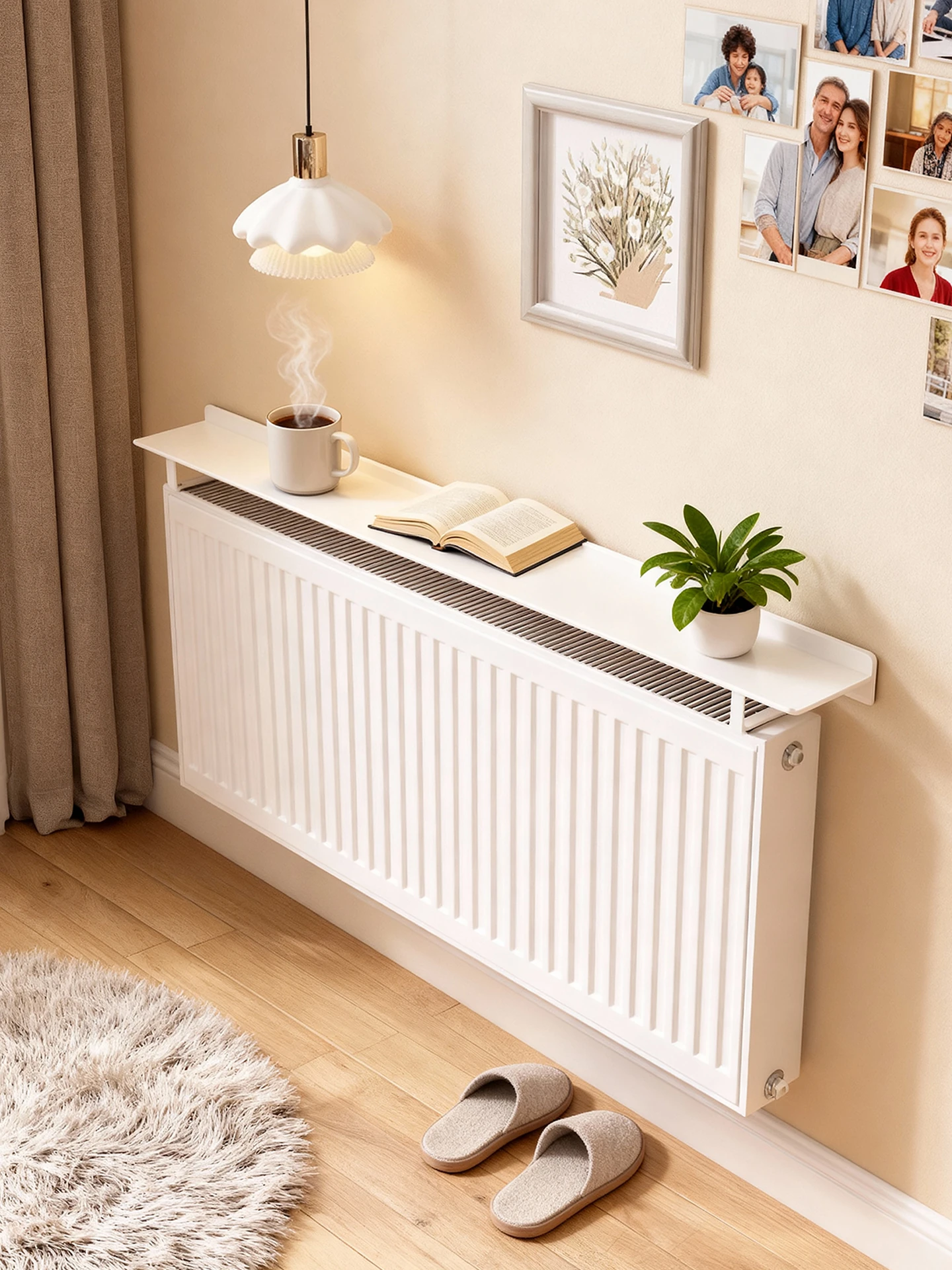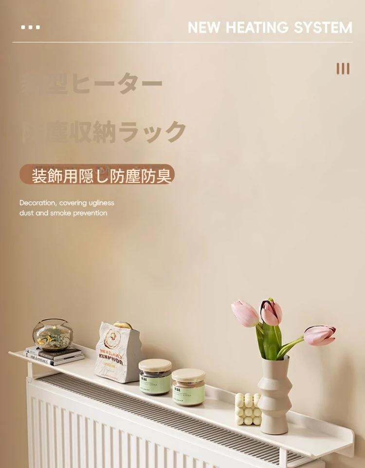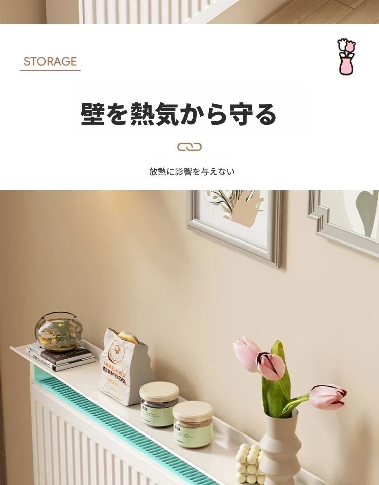 暖房用おしゃれな上置き棚 - リビングの壁にぴったりフィット!埃や煙から守る美しいディスプレイ板で、インテリアを引き立てる必需品。