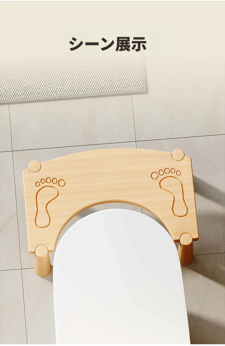 天然木製の子供用バスルームスツール - 滑り止め&厚手の洗脚用スツール、シンプルで可愛いデザイン、赤ちゃんの足元をしっかりサポート!安全で快適なお手伝い用スツール。