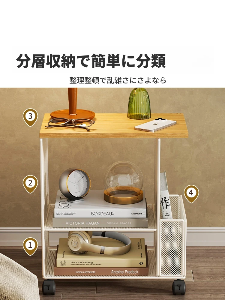 移動可能な多層デザインのベッドサイドキャビネット!おしゃれな収納スペースで、寝室をスッキリ整頓。小物や本をスマートに整理できる便利なアイテムです。あなたの家にぴったりのシンプルで機能的な収納家具!