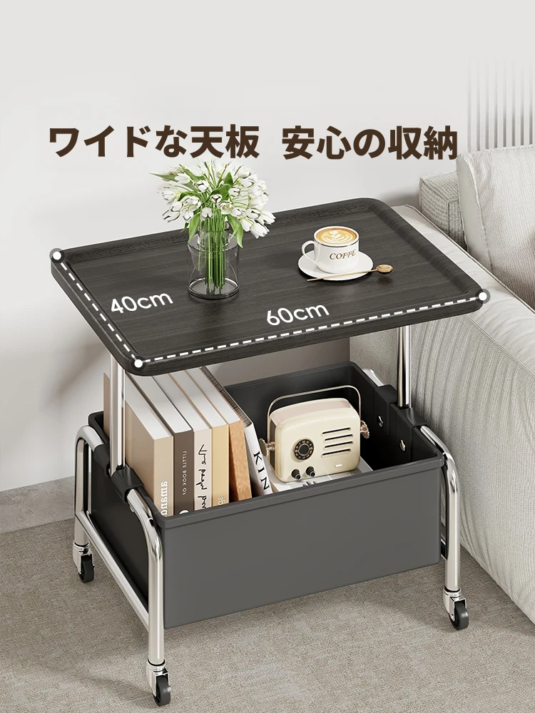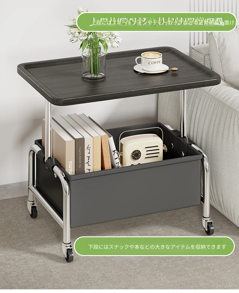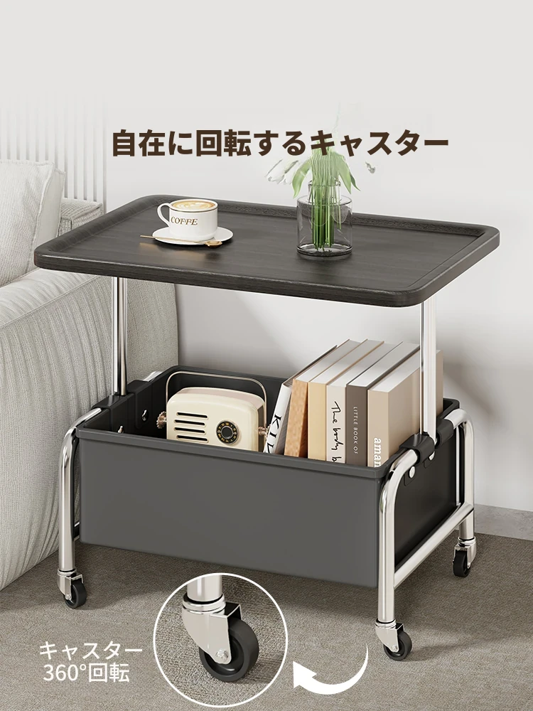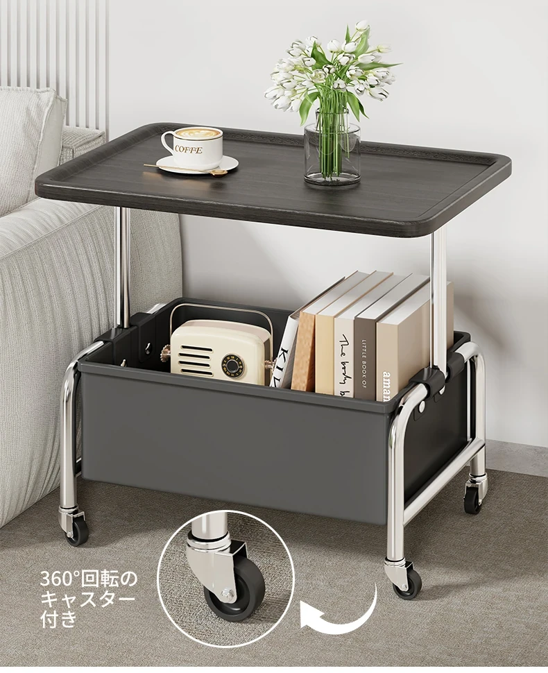 移動式小茶几&収納付きサイドテーブル - リビングやベッドサイドに最適!便利なキャスター付きで、お部屋をスマートに演出。おしゃれで機能的なアイテムで、生活をもっと快適に!