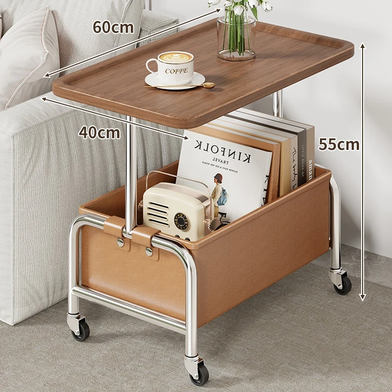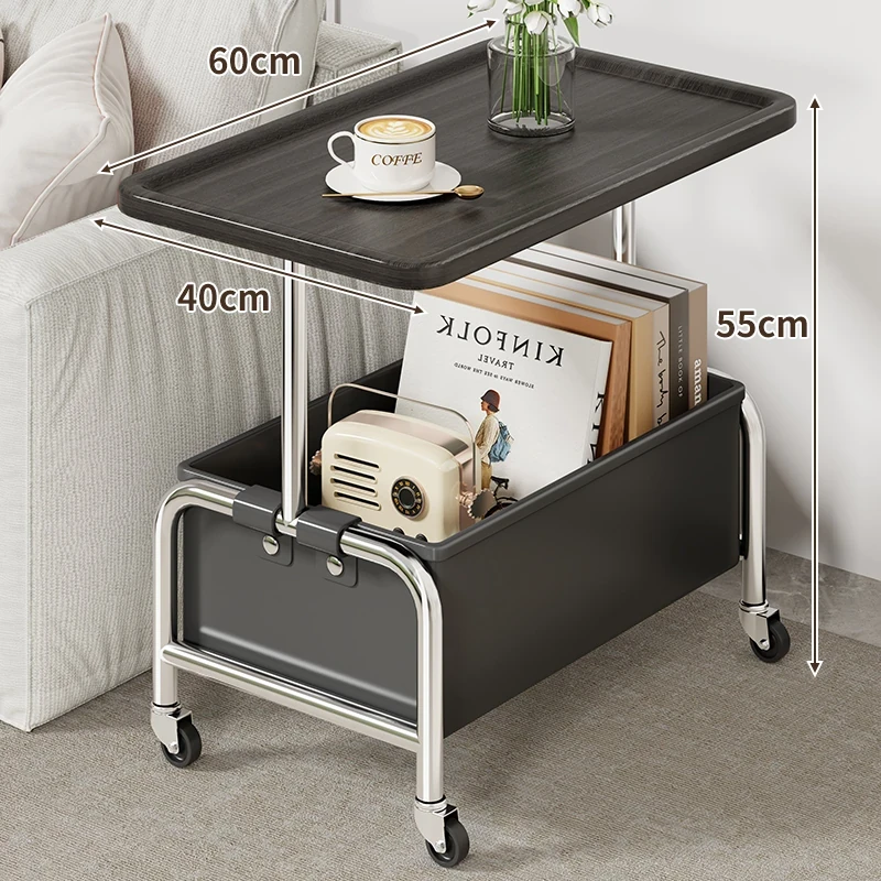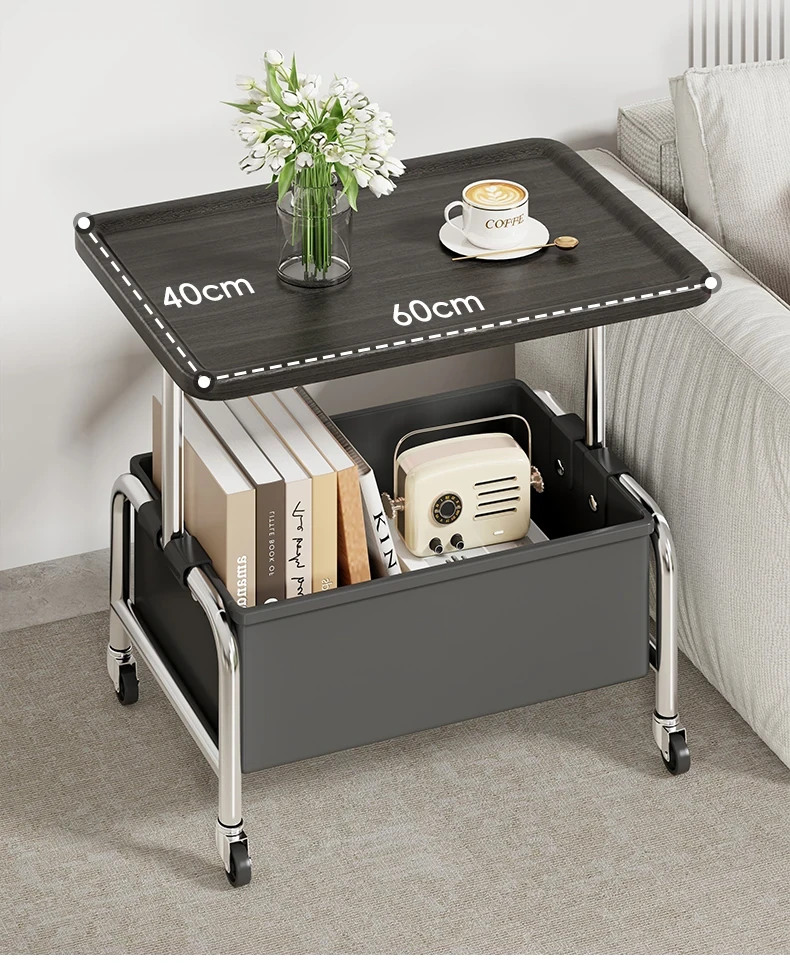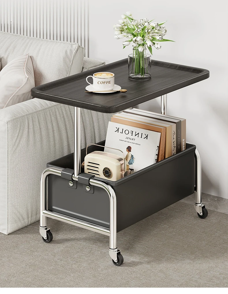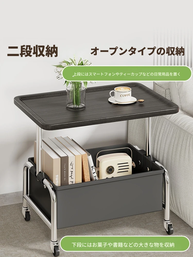 移動式小茶几&収納付きサイドテーブル - リビングやベッドサイドに最適!便利なキャスター付きで、お部屋をスマートに演出。おしゃれで機能的なアイテムで、生活をもっと快適に!